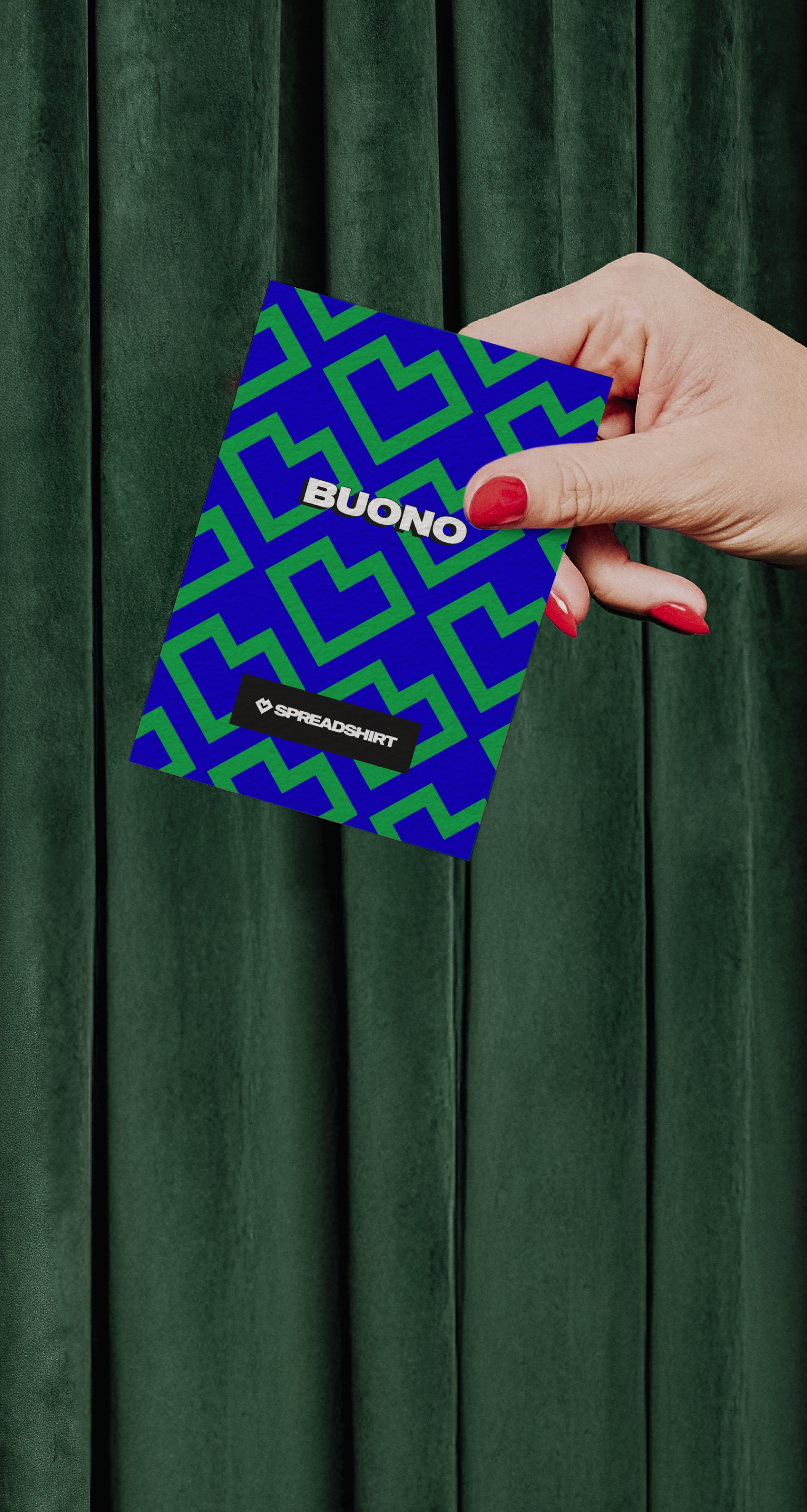 Utilizza il buono di Spreadshirt per i tuoi acquisti sulla piattaforma e all’interno degli Spreadshop (non utilizzabile per l’acquisto di altri buoni).